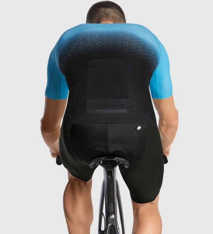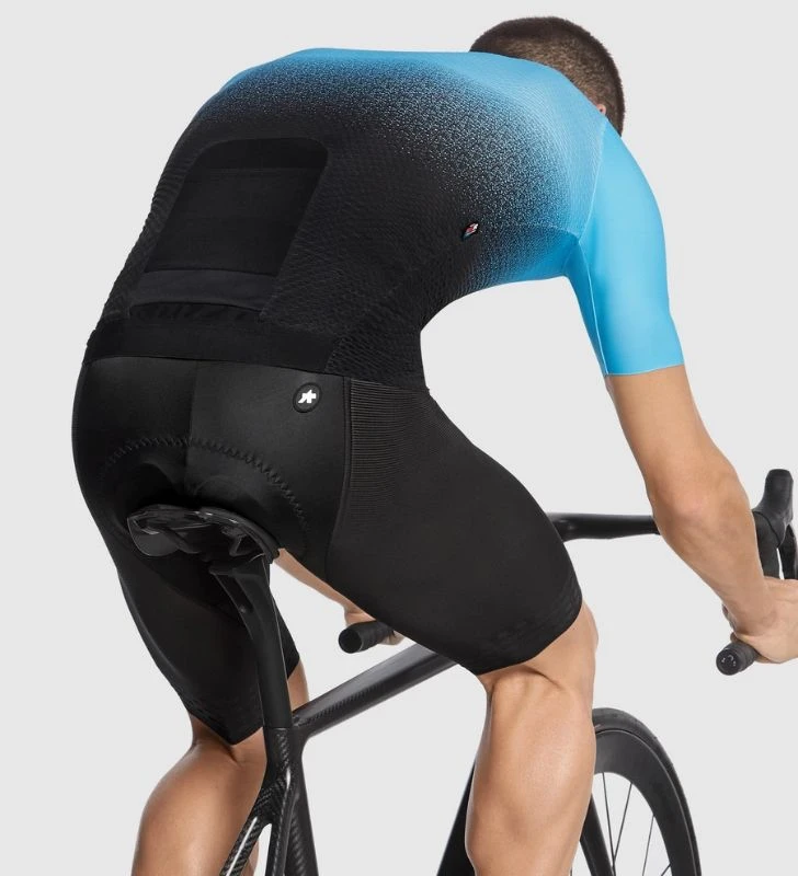 - El nuevo tejido Hill Rombo es el más ligero que jamás hayamos empleado en el cuerpo de un maillot. Es de punto circular, similar al del tejido utilizado en los accesorios Foil de peso ligero de la colección ASSOSOIRES, por lo que lleva la transpirabilidad y la refrigeración al extremo. El tejido Push Pull Light empleado en las mangas, por su parte, es una versión más transpirable y ligera del material que solemos utilizar en las mangas de los maillots de competición. Finalmente, el bolsillo trasero está confeccionado con un tejido de rejilla superligero que contribuye también a reducir el peso total del maillot.