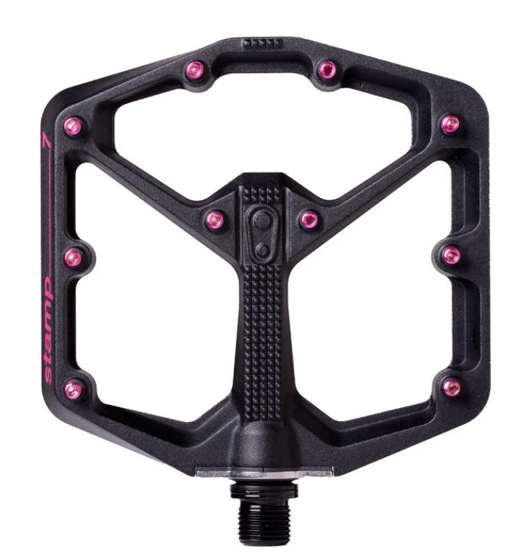 Los pedales Crank Brothers Stamp 7 destacan por ser finos y ligeros, con un acabado y un funcionamiento perfectos. son pedales con plataforma específica en compuesto e interfaz zapatilla/pedal optimada, con 10 pines ajustables a cada lado del pedal para un agarre perfecto. La plataforma es de aluminio forjado, muy robusto y ligero. Los rodamientos, por otra parte, son de aguja, para acrecentar su durabilidad.