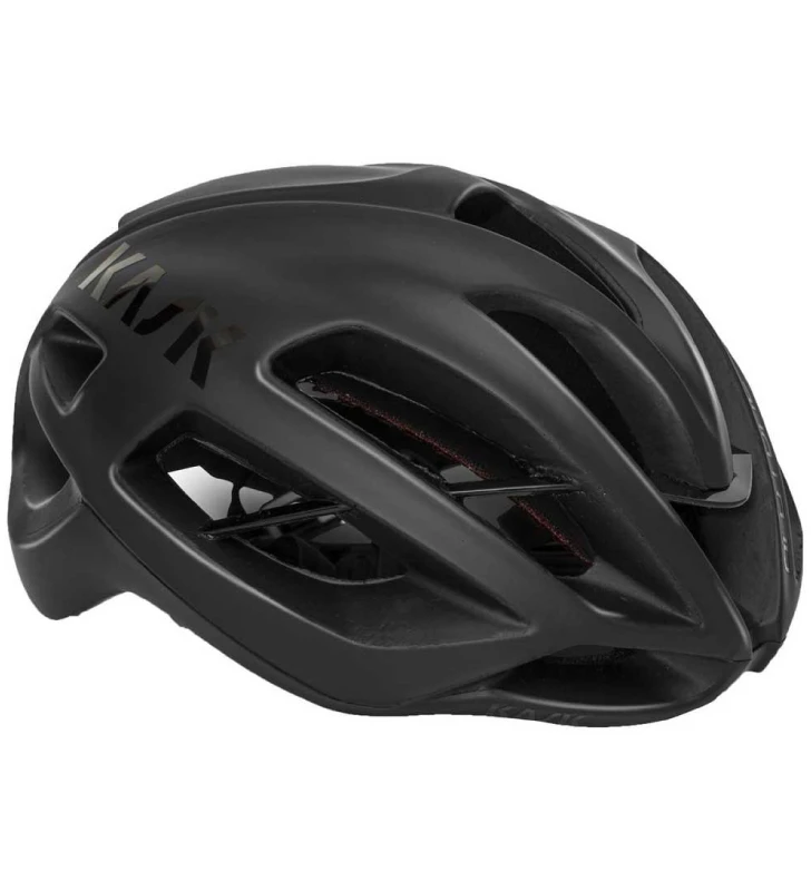 Casco Kask Protone WG11 de alta gama y muy ligero desarrollado en el túnel del viento con una gran capacidad para la dispersión del calor. El casco se ha fabricado usando la tecnología MIT Multi In-Moulding que garantiza una mayor seguridad y una protección completa gracias a la capa de policarbonato que cubre la parte superior, el perímetro inferior y la parte posterior. La cobertura total de EPS poliestireno expandido asegura la distribución de la fuerza del impacto a toda la superficie, manteniendo la unión con la parte exterior en caso de impacto y permitiendo una mayor durabilidad del casco. Este sistema de fabricación permite que el Protone ofrezca una mayor capacidad de absorción y un menor riesgo de rotura en caso de impacto.