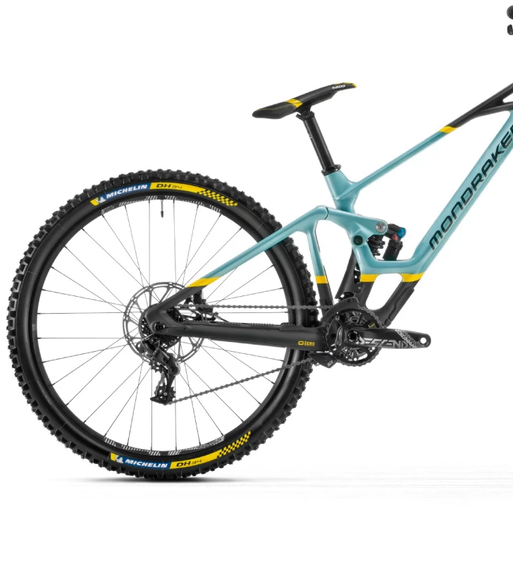 - Neumático trasero: Michelin DH34 29×2.4, tubeless ready, compuesto Magi-X DH, carcasa reforzada DH Shield, con aro rígido