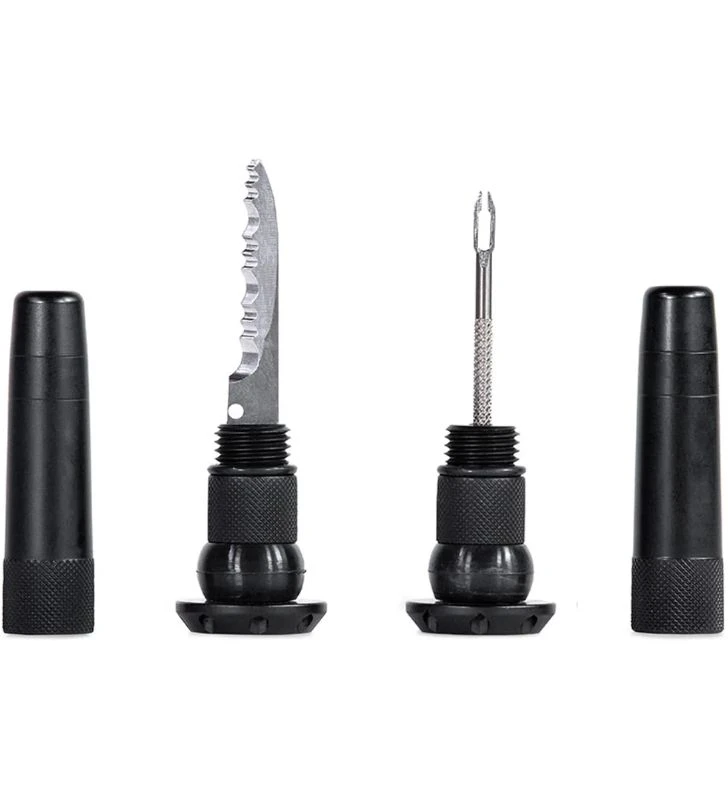 El kit de reparación para neumáticos tubeless Muc-Off Stealth permite reparar los pinchazos durante las salidas, para después guardarlo cómodamente en los extremos del manillar. Los tapones de sílice expansibles se adaptan a la mayoría de los tamaños de manillar de MTB, carretera y Gravel. Consta de una herramienta de reparación de pinchazos 2 en 1 de acero inoxidable, una variedad de mechas para neumáticos de diferentes tamaños y una cuchilla para recortar.