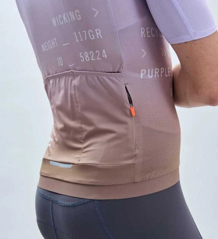 El maillot Pristine Print ofrece un acabado más limpio y nítido gracias a la opción de cortar el maillot con líneas más rectas e incluir un cuello más pequeño y delgado. Confeccionado con materiales reciclados, el maillot de ciclismo de ruta cuenta con zonas de malla en áreas clave para mejorar la ventilación y el flujo de aire. Los bolsillos grandes brindan un amplio espacio para almacenar todos los elementos esenciales del viaje, y la seguridad se mejora mediante la inclusión de detalles reflectantes, así como un panel My Info para información de emergencia y detalles de contacto.