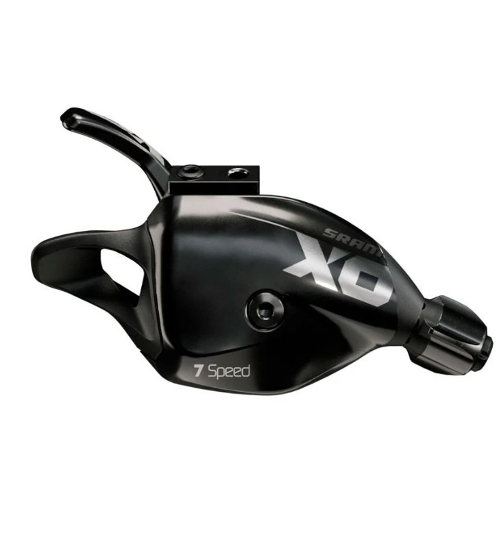 La palanca de cambios SRAM X01 DH Trigger 7V con cuerpo de aluminio forjado brinda la estabilidad y durabilidad que precisa para dominar aun los terrenos más exigentes.